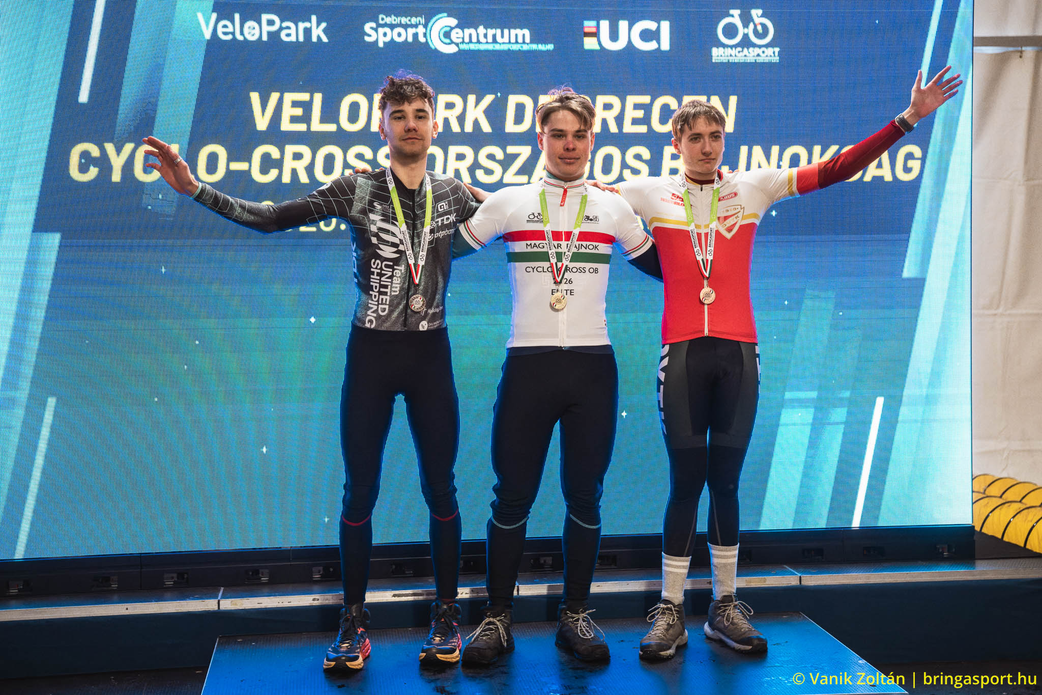 Takács Zsombor (középen) a terepkerékpár ob dobogóján (fotó: Vanik Zoltán / Bringasport)