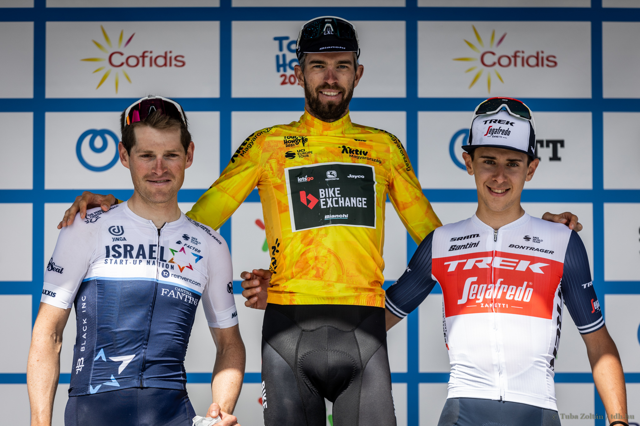 A 2016-os Tour de Hongrie összetett dobogója: Olekszandr Polivoda mellett jobbra az Israel Cycling Academy két versenyzője, Mihkel Räim és Daniel Turek