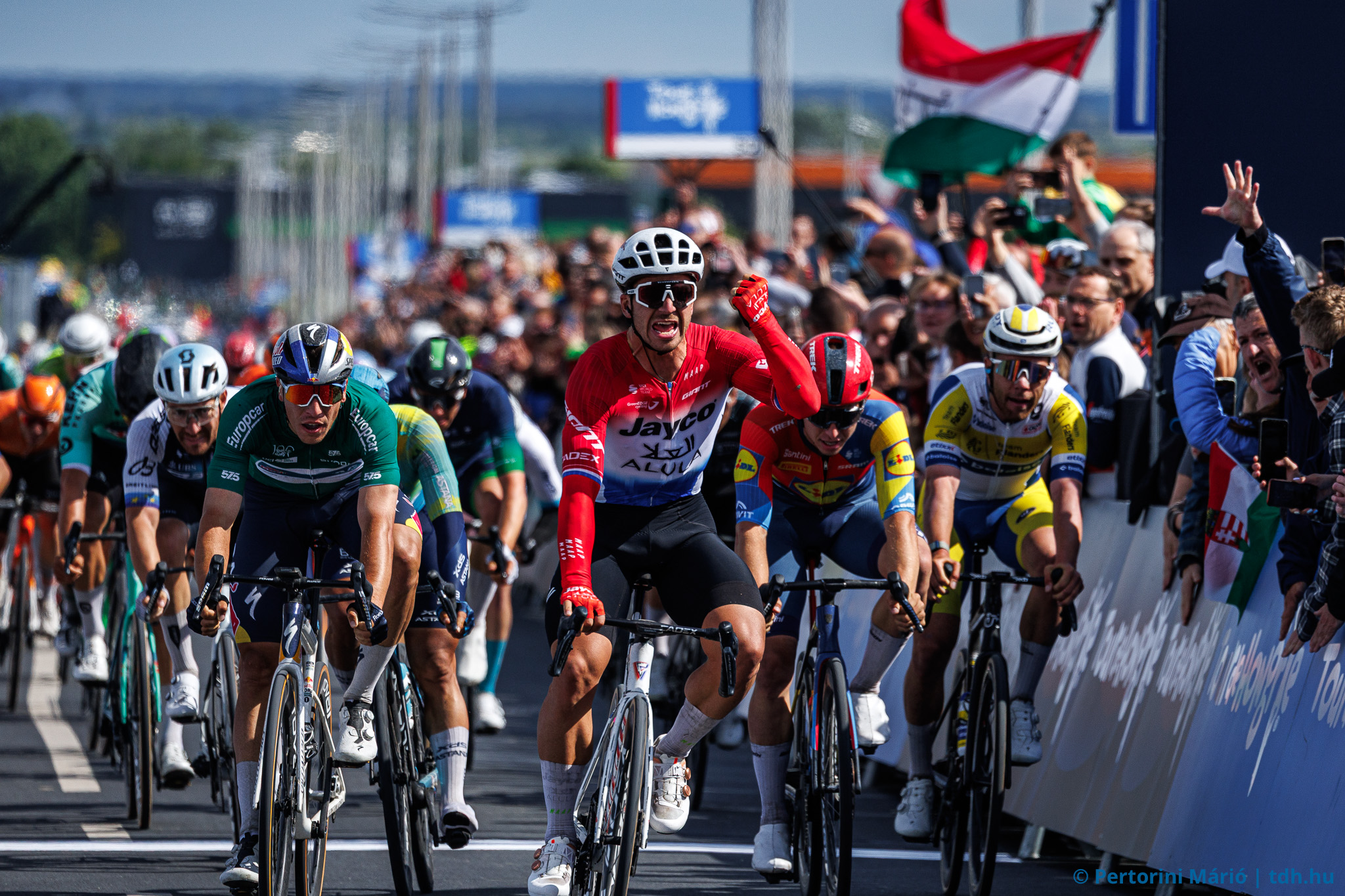 Groenewegen harmadik Tour de Hongrie-szakaszgyőzelmét ünnepli (2025, Székesfehérvár)